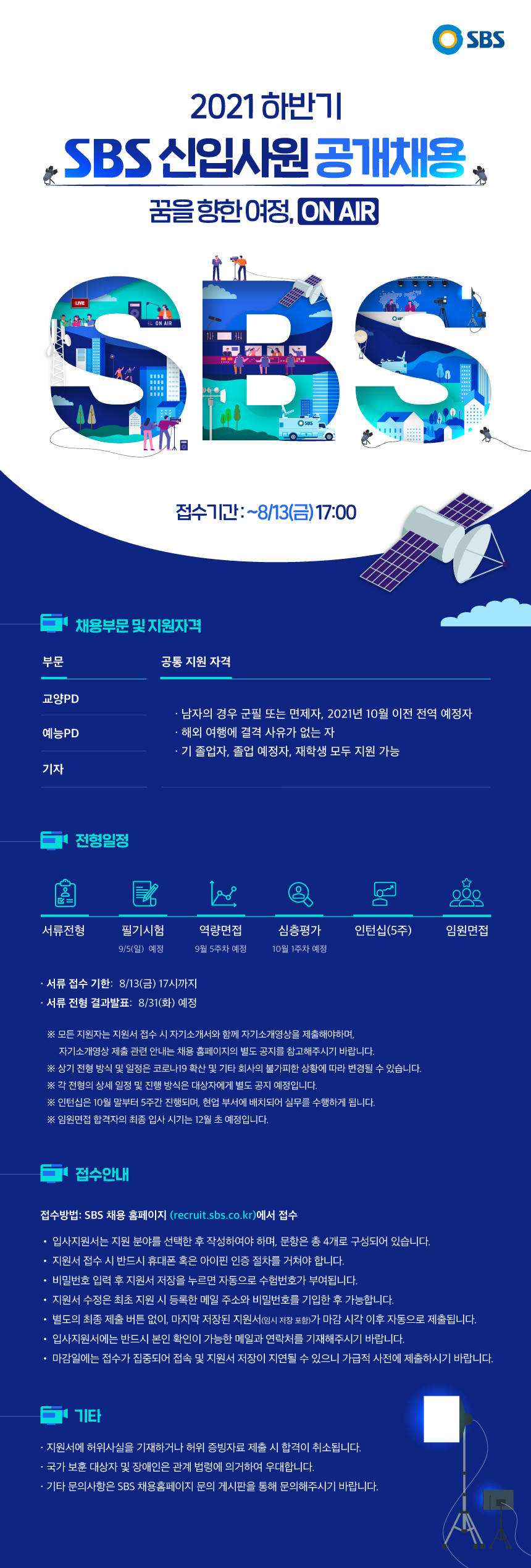 SBS¿¡¼ 2021 ÇϹݱ⠽ÅÀÔ»ç¿ø °ø°³Ã¤¿ëÀ» ÁøÇàÇÑ´Ù°í ÇÕ´Ï´Ù. °ü½É ÀÖ´Â ÇлýµéÀº Âü°íÇϽñ⠹ٶø´Ï´Ù.