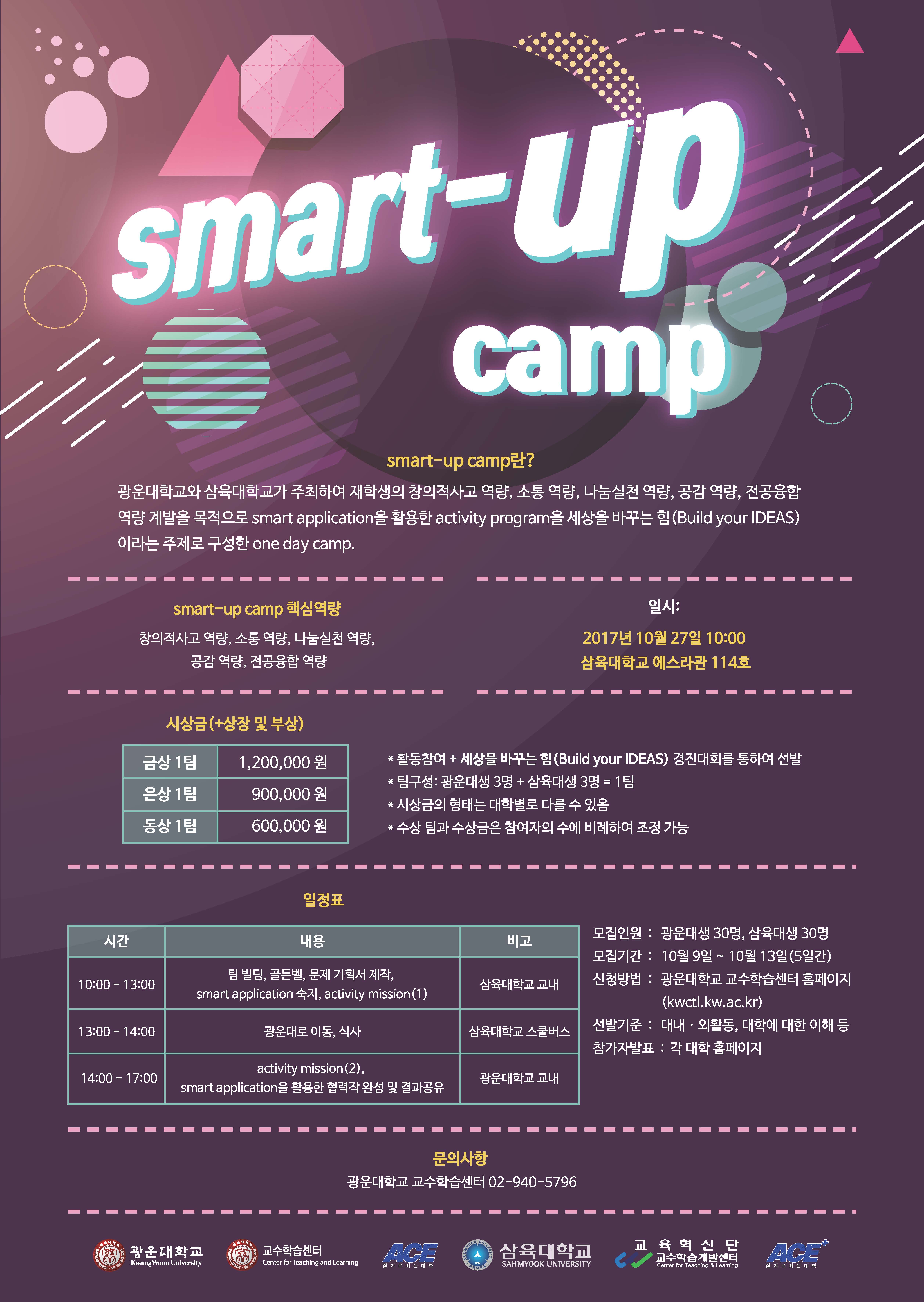 ±¤¿î´ë¿Í »ïÀ°´ë°¡ ÇÔ²² ÁÖÃÖÇÏ´Â Smart UP Camp ÀÔ´Ï´Ù. ¸¹Àº ½Åû ¹Ù¶ø´Ï´Ù.